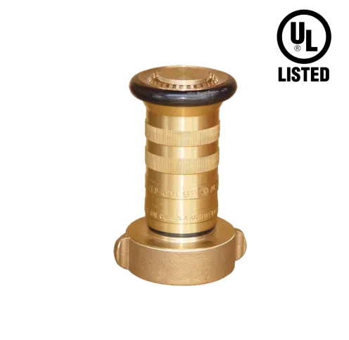 Adjustable nozzle are used for Class A and B fires in most industrial applications. They are used with lined fire hose. Adjustable fog, straight stream and shut off.